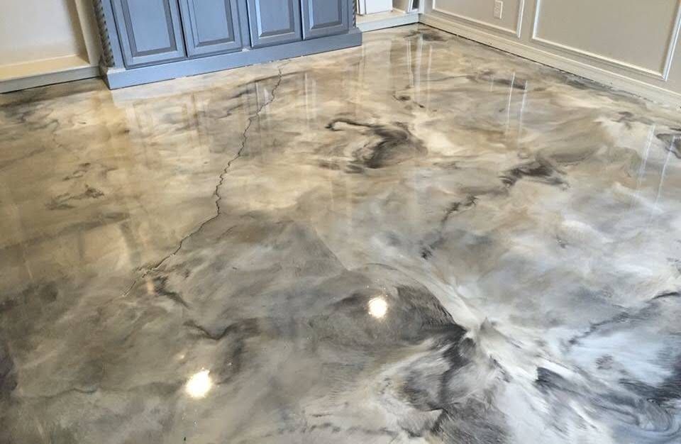 We pour standard "out of the bag" Self leveling overlayment and then diamond polish it to a wondefull shine. We break the cap and use a succesion of diamond pads and then we apply densifier and a sealer finally a high speed burnishing leaving you with an art deco masterpiece under your feat.